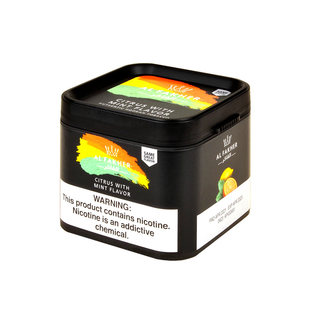Al Fakher Citrus Mint Hookah Shisha 250g are premium hookah shisha tobacco designed for adult smokers who want rich flavor and a smooth, satisfying draw. Perfect for lounges, hookah bars, and home sessions, these value packs deliver consistent quality, slow burn, and bold taste every time. Buy Al Fakher Citrus Mint Hookah Shisha 250g online at discount prices and stock up on one of today's most popular hookah shisha tobacco options with fast, discreet shipping.