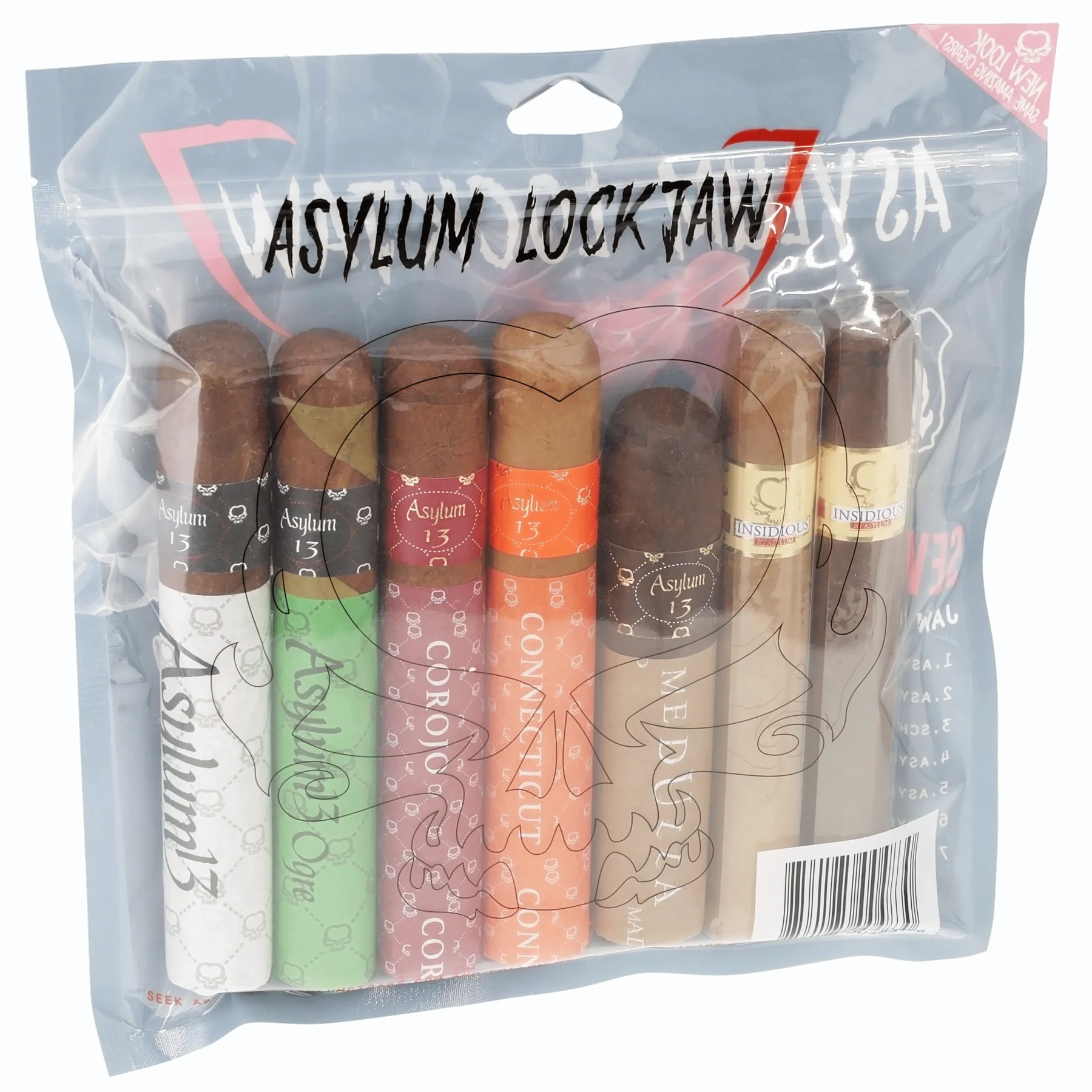 Asylum Lockjaw Sampler offers a variety of Asylum cigars for trying different profiles in one pack.