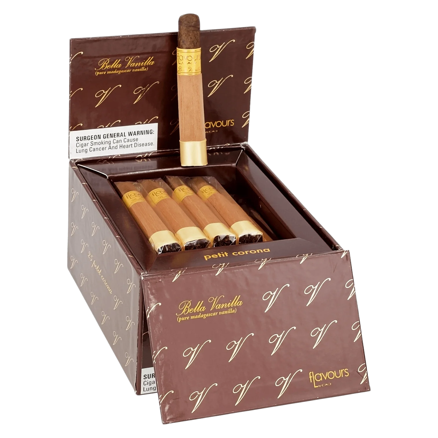 This listing is sold as Box of 25. Always confirm the exact count on the product label when it arrives. - What is CAO Bella Vanilla known for?