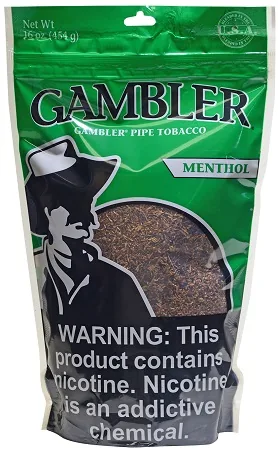 Gambler Pipe Tobacco Menthol (Mint) 16 oz. Bag offers premium pipe tobacco with a cool, refreshing menthol-mint profile, ideal for adult pipe smokers and roll-your-own enthusiasts. Packaged in a handy 16 oz. bag, this blend delivers consistent cut, easy packing, and a smooth, even burn in every bowl or RYO cigarette. Buy this Gambler pipe tobacco online in bulk to save on your everyday go-to blend.