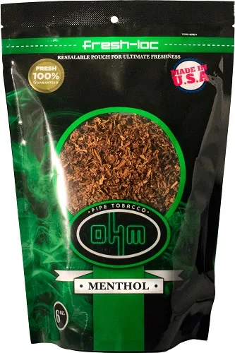 OHM Menthol Pipe Tobacco 6 oz. Bag offers premium pipe tobacco with a cool, refreshing menthol-mint profile, ideal for adult pipe smokers and roll-your-own enthusiasts. Packaged in a handy 6 oz. bag, this blend delivers consistent cut, easy packing, and a smooth, even burn in every bowl or RYO cigarette. Buy this OHM pipe tobacco online in bulk to save on your everyday go-to blend.