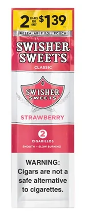 Swisher Sweets Cigarillos $1.19 Pre Priced 30 Packs of 2 Cigars Strawberry are premium flavored cigarillos designed for adult smokers who want rich flavor and a smooth, satisfying draw. Perfect for lounges, hookah bars, and home sessions, these value packs deliver consistent quality, slow burn, and bold taste every time. Buy Swisher Sweets Cigarillos $1.19 Pre Priced 30 Packs of 2 Cigars Strawberry online at discount prices and stock up on one of today's most popular flavored cigarillos options with fast, discreet shipping.