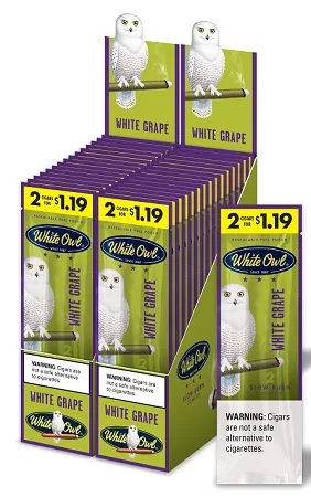 White Owl Cigarillos $1.19 Pre Priced 30 Packs of 2 Cigars White Grape are premium flavored cigarillos designed for adult smokers who want rich flavor and a smooth, satisfying draw. Perfect for lounges, hookah bars, and home sessions, these value packs deliver consistent quality, slow burn, and bold taste every time. Buy White Owl Cigarillos $1.19 Pre Priced 30 Packs of 2 Cigars White Grape online at discount prices and stock up on one of today's most popular flavored cigarillos options with fast, discreet shipping.